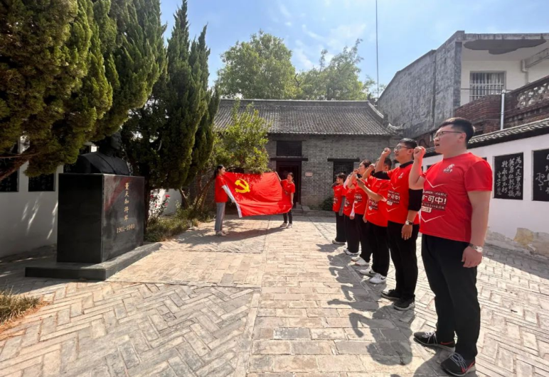 在董天知将军的雕像前,参加活动的党员整齐列队,怀着无比崇敬的心情,庄严地举起右手,重温入党誓词。“我志愿加入中国共产党……”铿锵有力的誓言响彻故居上空,久久回荡。这不仅是一次对革命先烈的庄严告慰,更是党员们对自己初心使命的再次坚定与强化。